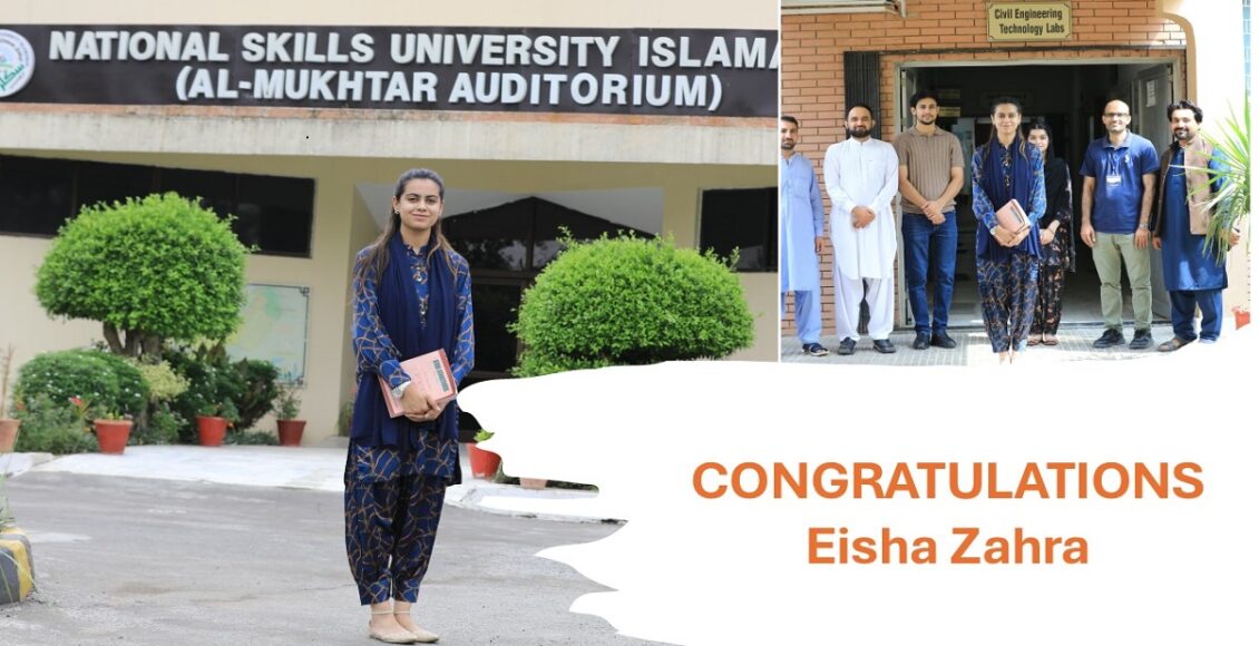 اسلام آباد کی نیشنل اسکلز یونیورسٹی (NSU) نے بین الاقوامی تعلیمی منظرنامے میں ایک اور سنگ میل عبور کر لیا ہے۔ یونیورسٹی کی سول انجینئرنگ ٹیکنالوجی کی فائنل ایئر کی طالبہ محترمہ عائشہ زہرہ نے گریجویشن مکمل ہونے سے قبل ہی دنیا کی 49ویں بہترین جامعہ — زی جیانگ یونیورسٹی، چین — میں ماسٹرز پروگرام کے لیے حکومتِ چین کا بین الاقوامی اسکالرشپ حاصل کر لیا ہے۔