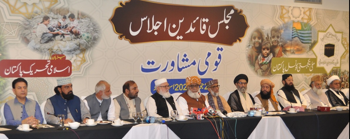 اسلام آباد:ملی یکجہتی کونسل پاکستان نے مسلہ فلسطین کے دوریاستی حل اور ابراہیمی معاہدہ کو یکسر مسترد کرتے ہوئے مطالبہ کیا ہے کہ حکومت پاکستان ہر دو مسائل پر اپنا موقف کو واضح کرےجبکہ کونسل نے ملک میں دہشت گردی کے خاتمے، غیر سودی نظام کے نفاذ بڑھتی ہوئی مہنگائی، سماجی نا انصافی، نکاح اور توہین رسالت کے مسائل کو زمینی حقائق کے مطابق حل کرنے کا مطالبہ کیا ہے، اس امر اظہار ملی یکجہتی کونسل پاکستان مجلس قائدین اجلاس و قومی مشاورت میں کیا گیاجس کی میزبانی کے فرائض اسلامی تحریک پاکستان نے انجام دئیے۔ اجلاس سے خطاب کرتے ہوئے اجلاس کے مہمان خصوصی سربراہ جمیعت علمائے اسلام پاکستان مولانا فضل الرحمان نے کہا کہ علمائے کرام نے پاکستان میں ہمیشہ مسلح جدو جہد کو یکسر مسترد کیا ہے۔ بیرونی دباو کے تحت دینی مدارس پر قدغن لگانے کی کوشش کی ہے۔ بلوچستان اور کے پی کے میں فوجی آپریشنز کے باوجود حکومتی رٹ موجود نہیں ہے۔ مسلح گروہ دن رات سڑکوں پر نکل آتے ہیں ۔ یہ سب بدامنی اور ناکامی ہماری حکومت کی نااہلی کی وجہ سے ہے۔ پاکستان مسلہ کشمیر سے تدریجی طور پر پیچھے ہٹتا رہا ہے۔ فلسطین پر اسرائیل کا ناجائز قبضہ ہے کیا امریکہ کو اجازت ہے کہ وہ مقبوضہ سرزمین پر اپنا سفارت خانہ کھولے، صاحبزادہ ابو الخیر محمد زیبر صدر ملی یکجہتی کونسل پاکستان نے اجلاس سے خطاب کرتے ہوئے کہا کہ ہماری حکومت فلسطین کے مسئلےپر ٹس سے مس نہیں ہو رہی ہے الٹا نیتن یاہو کی طرح ہمارے حکمران بھی ٹرمپ کو نوبل پرائز دینا چاہتے ہیں اس حوالہ سے ہمارے نائب وزیر اعظم اور وزیر داخلہ کے بیانات قابل مذمت ہیں، اسرائیل بھوک کو جنگی ہتھیار کے طور پر فلسطینی عوام کے خلاف استعمال کر رہا ہے، اجلاس سے خطاب کرتے ہوئے سربراہ اسلامی تحریک پاکستان علامہ سید ساجد علی نقوی نے کہا ہے کہ ہمیں فلسطین کے حوالہ سے ایسا لائحہ عمل اپنا چاہیے جس سے سامراجی قوتوں تک پیغام پہنچے کہ یہ جنگ بند ہو کیونکہ یہ جنگ انہی سامراجی قوتوں کی ایما ء پر ہو رہی ہے۔ ملک میں ریلیاں بھی ہوئیں احتجاج بھی لیکن ہمارے ملک کی جانب سے سفارتی سطح پر کوئی بڑا پیغام نہیں گیا ۔ پاکستانی عوام نے فلسطینوں کے 21 ماہ سے جاری قتل عام پر شدید احتجاج کیا، ابراہمی معاہدہ مسترد کرتے ہیں، امیر جماعت اسلامی پاکستان حافظ نعیم الرحمان نے کہا کہ غزہ والوں کی مزاحمت اور مقاومت کو اسرائیل ختم نہیں کر سکا الٹا اسرائیل کا خوف اور دبدبہ ختم ہو چکا ہے،ایران کی طرف اسرائیل پر پلٹ کر وار کرنا لائق تحسین ہے اور ہم ایران کو مبارکباد پیش کرتے ہیں،توہین رسالت کے حوالہ سے چلنے والے کیس میں حق و حقیقت پر مبنی فیصلے ہونے چاہیں،مجلس قائدین اجلاس میں لیاقت بلوچ ،مولانا محمد امجد خان ،حافظ عبدالغفار روپڑی ،مفتی گلزار احمد نعیمی ،خرم نواز گنڈا پور،قاری محمد یعقوب شیخ ، مولانا اللہ وسایا ،علامہ سید ضیاء اللہ شاہ بخاری ،مولانا زاہد محمود قاسمی ،علامہ ڈاکٹر شبیر حسن میثمی، ،ڈاکٹر حضور مہدی ،پیر سید صفدر شاہ گیلانی، علامہ عارف واحدی، محمدعبداللہ حمید گل، مولانا عبدالمالک، ڈاکٹر سید علی عباس نقوی، ڈاکٹر ضمیر اختر خان، سید اقبال احمد رضوی، ڈاکٹر صابر ابو مریم، قاضی ظفر الحق، رضیت باللہ، زاہد علی اخوانزادہ اور کثیر تعداد میں علمائے کرام نے شرکت کی۔شرکاء نے مشترکہ اعلامیہ میں کہا کہ ملک میں غیر سودی نظام کا نفاذ فوری کیا جائےا ور ملک کی بگڑتی ہوئی سیاسی، سماجی اور معاشی صورت حال پر شدید تشویش کا اظہار کیا گیا۔ اجلاس میں کہا گیا کہ پاکستان کا اسلامی تشخص، آئینی بالادستی اور قومی وحدت حکومتی نااہلی، تعصبات اور ادارہ جاتی مداخلت کی وجہ سے شدید خطرات سے دوچار ہے۔ پاک بھارت حالیہ جنگ میں قوم نے اتحاد کا مظاہرہ کیا اور افواجِ پاکستان نے بہادری سے معرکہ سر کیا، تاہم اس کامیابی کے بعد ملک کے اندرونی مسائل کو سنجیدگی سے حل کرنے کی ضرورت تھی، جو بدقسمتی سے نظر انداز کر دی گئی بالخصو ص امن وامان کی صورت حال۔ حکومت اور اسٹیبلشمنٹ کے رویے کو آئین، 