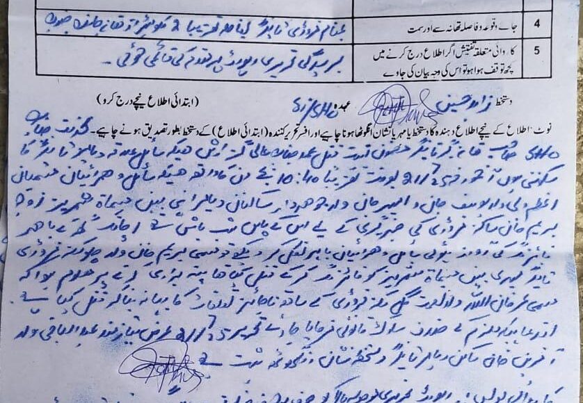اطلاعات کے مطابق مقتولہ ایک شادی شدہ خاتون اور چار بچوں کی ماں تھی، جو اُس وقت گھر میں اکیلی تھی جب دروازے پر موجود ایک شخص سے اُس نے بات چیت کی۔ یہ شخص مقامی "زیتو” یعنی پانی کی کمیٹی کا رکن تھا اور یہ گفتگو کمیٹی کی موجودگی میں ہو رہی تھی۔ اسی دوران، ایک شخص نے، جو خود کو "غیرت مند” ظاہر کرتا ہے، موقع پر پہنچ کر عوام کی موجودگی میں خاتون پر گولی چلا دی، جس سے وہ موقع پر ہی جاں بحق ہو گئی۔ اس کے بعد مذکورہ شخص نے کمیٹی کے رکن کو بھی بے دردی سے موت کے گھاٹ اتار دیا۔