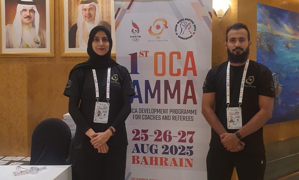 پاکستان مکسڈ مارشل آرٹس فیڈریشن (PMMAF) کے کوچ اینڈ ریفری کی پہلے اولمپک کونسل آف ایشیا (OCA) – ایشین مکسڈ مارشل آرٹس ایسوسی ایشن (AMMA) ڈیویلپمنٹ پروگرام برائے کوچز اور ریفریز میں شرکت کر رہے ہیں، جو 25 سے 27 اگست 2025 تک بحرین میں منعقد ہو رہا ہے۔