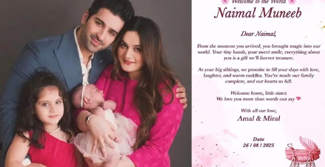 واضح رہے کہ اس سے قبل اس جوڑی کی 2 بیٹیاں امل اور مرال ہیں، جن کی پیدائش 2019 اور 2023 میں بالترتیب ہوئی ہے، اداکار منیب بٹ اور اداکارہ ایمن خان کی شادی 2018 میں ہوئی تھی۔