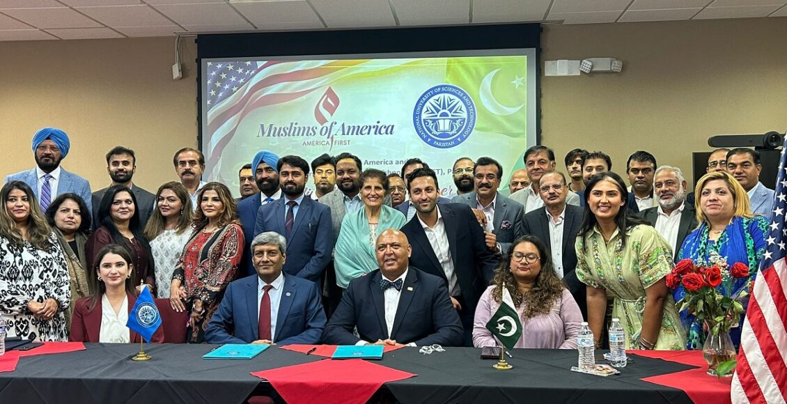 واشنگٹن ڈی سی: پاکستان کے کم مراعات یافتہ طلباء کو اعلیٰ تعلیم کے مواقع فراہم کرنے کی ایک اہم کاوش کے تحت مسلمز آف امریکہ اور نیشنل یونیورسٹی آف سائنسز اینڈ ٹیکنالوجی (NUST) کے درمیان آج واشنگٹن ڈی سی میں مفاہمتی یادداشت (MoU) پر دستخط کیے گئے۔