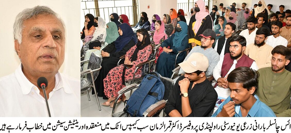پیر مہر علی شاہ بارانی زرعی یونیورسٹی راولپنڈی نے سب کیمپس اٹک میں داخلہ لینے والے نئے طلباء کو خوش آمدید کہتے ہوئے ان کے لیے خصوصی اورینٹیشن سیشنز کا انعقاد کیا۔ اس سیشنز کا مقصد طلباء کو یونیورسٹی کے قواعد و ضوابط، تعلیمی پروگرامز اور کیمپس کے متعلق آگاہی فراہم کرنا تھا۔ سیشنز میں وائس چانسلر پروفیسر ڈاکٹر قمر الزمان نے رجسٹرار، ڈینز، ڈائریکٹرز اور پرنسپل آفیسرز کے ہمراہ شرکت کی۔
