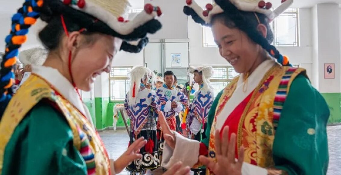 چین کے شہر لہاسا میں سیکنڈری ووکیشنل اینڈ ٹیکنیکل سکول نمبر 2 کی طالبات روایتی تبتی اوپیرا کی مشق میں مصروف، ثقافتی ورثے کے فروغ کی شاندار مثال پیش کر رہی ہیں۔