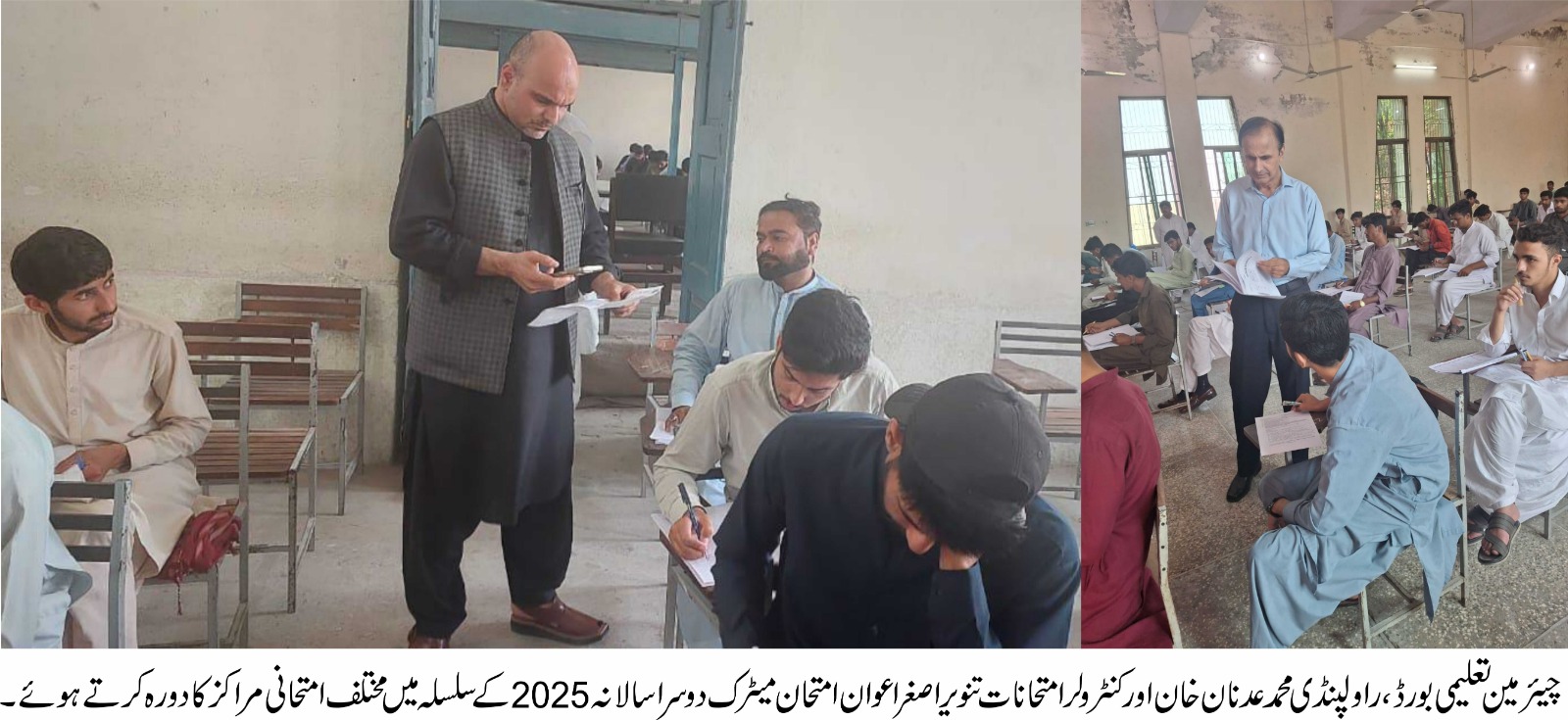 راولپنڈی (رپورٹ سید محمد یاسین ہاشمی )چیئرمین تعلیمی بورڈ راولپنڈی محمد عدنان خان اور کنٹرولر امتحانات تنویر اصغر اعوان نے میٹرک سیکنڈ اینول امتحانات 2025 کے سلسلے میں مختلف امتحانی مراکز کا دورہ کیا۔ امتحانی مرکز گورنمنٹ ہائی سکول ڈی اے وی کالج روڈ، راولپنڈی میں مہر علی ولد نثار محمد رولنمبر212945کی جگہ اویس فاروق ولد محمد فاروق دورانِ چیکنگ پیپر دیتے ہوئے رنگے ہاتھوں پکڑا گیاجس کے خلاف فوری کارروائی عمل میں لاتے ہوئے موقع پر گرفتار کروا کر ایف آئی آرکا اندراج کردیا گیا۔چیئرمین بورڈ نے کہا کہ وزیراعلیٰ پنجاب محترمہ مریم نواز کے ویژن کے مطابق امتحانات زیروٹارلینس پالیسی کے تحت ہو رہے ہیں اور نقل یا دھوکہ دہی کسی صورت برداشت نہیں کی جائے گی۔انہوں نے مزید کہا کہ شفاف اور منصفانہ امتحانی نظام کیلئے سخت اقدامات کیے جا رہے ہیں جبکہ امتحانی عملہ بھی پوری ذمہ داری کے ساتھ فرائض سرانجام دے رہا ہے۔