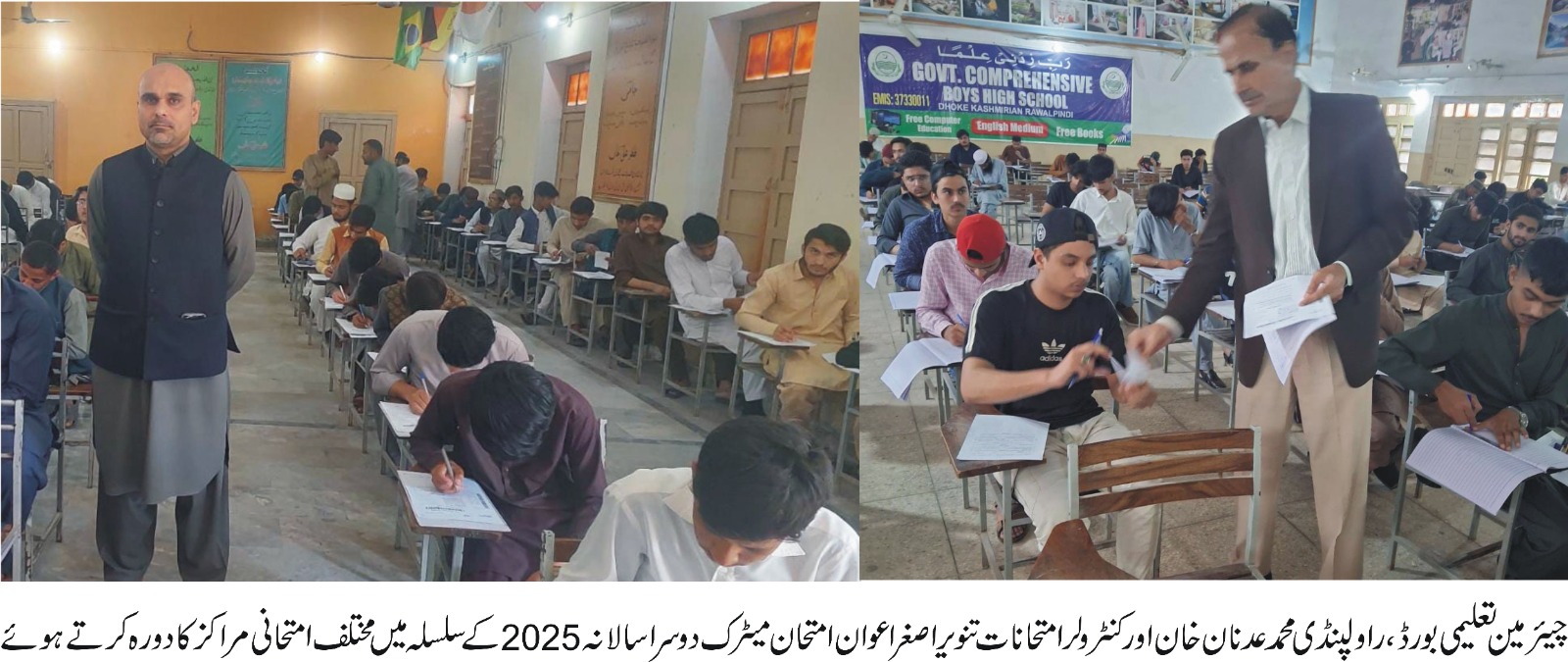 چیئرمین تعلیمی بورڈ راولپنڈی محمد عدنان خان نے فتح جنگ ضلع اٹک جبکہ کنٹرولر امتحانات تنویر اصغر اعوان نے راولپنڈی کے مختلف امتحانی مراکز کے ہنگامی دورے کیے۔