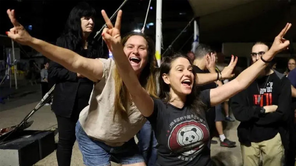 رات بھر تل ابیب کے ہوسٹیجز سکوائر میں لوگ خوشی کا اظہار کرتے رہے اور اس موقع پر نعرے بھی لگاتے رہے، یرغمالیوں کے اہلِ خانہ اپنے عزیزوں کی ممکنہ واپسی پر امن معائدہ ہو جانے کے بعد جشن مناتے نظر آئے۔