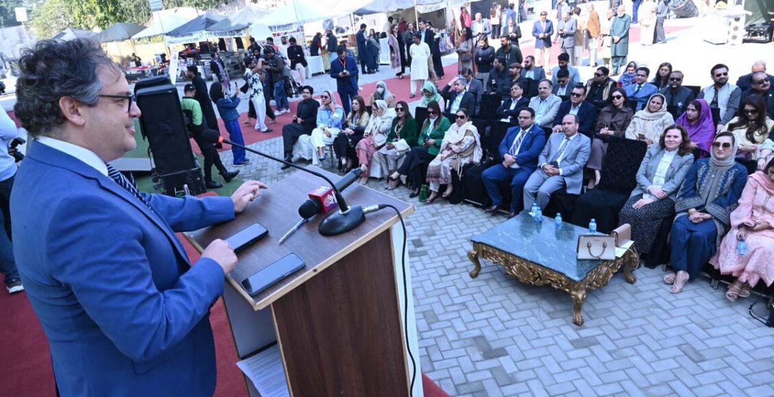 جمہوریہ ترکیہ کے پاکستان میں قونصل جنرل مہمت ایمن سمسک ، ویمن چیمبر آف کامرس اینڈ انڈسٹری سیالکوٹ کی صدر ڈاکٹر مریم صدیقہ اور ٹریڈ ڈویلپمنٹ اتھارٹی آف پاکستان کی سینئر ڈائریکٹر جنرل فوزیہ پروین چوہدری نے جمعہ کے روز ہیریٹیج کلب میں ویمن چیمبر آف کامرس اینڈ انڈسٹری سیالکوٹ کے زیر اہتمام منعقدہ خواتین کی چوتھی نمائش “وی ایگزیبٹ 2026” کا افتتاح کیا۔