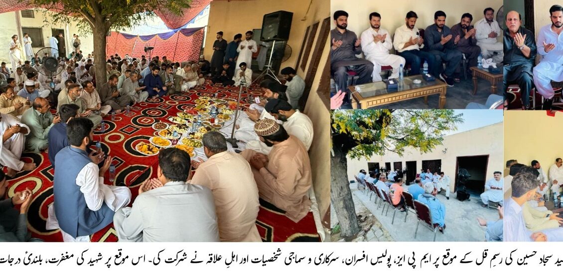 راولپنڈی :پنجاب پولیس کے بہادر کانسٹیبل سید سجاد حسین شہید کی قل خوانی کی تقریب ان کے آبائی گاؤں جھنگی دائم (چونترہ) میں نہایت عقیدت و احترام کیساتھ منعقد کی گئی۔ شہید نے اپنے فرائض کی انجام دہی کے دوران صدر واہ کے علاقہ میں دلیری سے ڈاکوؤں کا مقابلہ کرتے ہوئے جامِ شہادت نوش کیا ۔ جس پر انہیں بھرپور خراجِ عقیدت پیش کیا گیا۔قل خوانی کی تقریب میں پولیس و انتظامی افسران، منتخب عوامی نمائندوں، معززینِ علاقہ، صحافیوں، اہل علاقہ اور سول سوسائٹی کے افراد نے بڑی تعداد میں شرکت کی۔ اس موقع پر شہید کے ایصالِ ثواب کے لیے اجتماعی دعا کی گئی اور ان کی بے مثال قربانی کو سراہا گیا۔ نماز جنازہ سے لے کر رسم قل تک ایم پی اے چوہدری نعیم اعجاز، ایم پی اے چوہدری عمران الیاس، وائس پریزیڈنٹ مسلم لیگ ن راولپنڈی ڈاکٹر ضیاء ، سابق ایم پی اے و پارلیمانی سیکرٹری سرفراز افضل ، ایس پی فیصل سلیم، ایس پی صدر نبیل کھوکھر، ایس پی پوٹھوہار طلحہ ولی، ایس پی راجہ طیفور، ایس پی مصطفیٰ گلانی، ایس پی سردار بابر، ڈی ایس پی سلیم خٹک، ڈی ایس پی اصغر گورایہ، ڈی ایس پی عابد خان، ڈی ایس پی ستار خان ، پنجاب پولیس کے افسران چوہدری شفقت، طیب بیگ، اعزاز عظیم، سردار ہمایوں، زاہد ظہور ، حامد کاظمی ، لقمان پاشا ، چوہدری نوید ، ثاقب ستی سمیت اعلیٰ پولیس افسران اور دیگر نمایاں شخصیات نے شرکت کی۔ اس موقع پر پولیس افسران نے شہید کے اہل خانہ سے اظہار تعزیت کرتے ہوئے کہا کہ شہداء ہمارا فخر ہیں، ان کی قربانیاں کبھی فراموش نہیں کی جائیں گی۔ پنجاب پولیس ہر قدم پر اپنے شہداء کے خاندانوں کے ساتھ کھڑی ہے۔ افسران کی جانب سے پھولوں کی چادریں، دعا اور ذاتی شرکت نے شہید کے خاندان کو حوصلہ اور سہارا فراہم کیا۔ سید سجاد حسین شہید، سابق ریڈر سی پی او راولپنڈی انسپکٹر مشتاق شاہ اور ایس ایچ او تھانہ صدر واہ آفتاب شاہ کے بھائی، معروف سماجی رہنما سید کوثر عباس اور ممتاز کاروباری شخصیت سید عدنان حیدر کے ماموں، سب انسپکٹر عامر عباس، وقاص حیدر (پنجاب پولیس) کے چچا، طیب شاہ (پنجاب پولیس) کے ماموں، اور انسپکٹر اعجاز شاہ کے ماموں زاد بھائی تھے۔ شہید کے لواحقین کی جانب سے اس موقع پر شریک ہونے والے تمام معزز مہمانوں، افسران، اہل علاقہ اور دیگر کا تہہ دل سے شکریہ ادا کیا گیا جنہوں نے اس کٹھن گھڑی میں ان کا ساتھ دیا اور شہید کے لیے دعا گو رہے۔